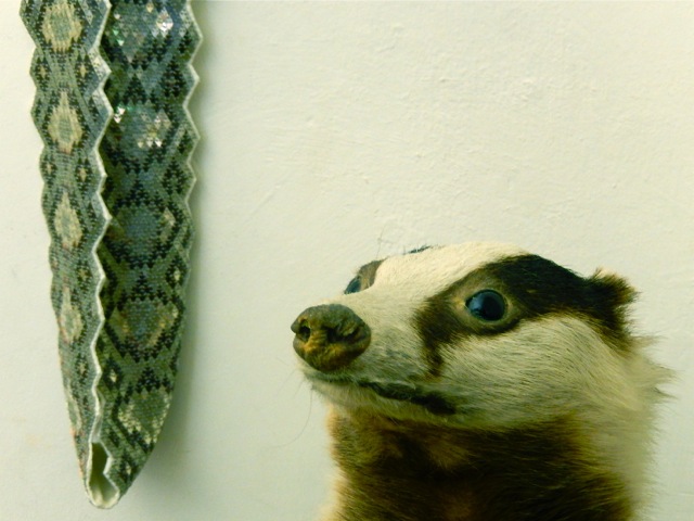 Dachs aus dem Jagdmuseum mit Mallory Weston Schlangenhautschmuck