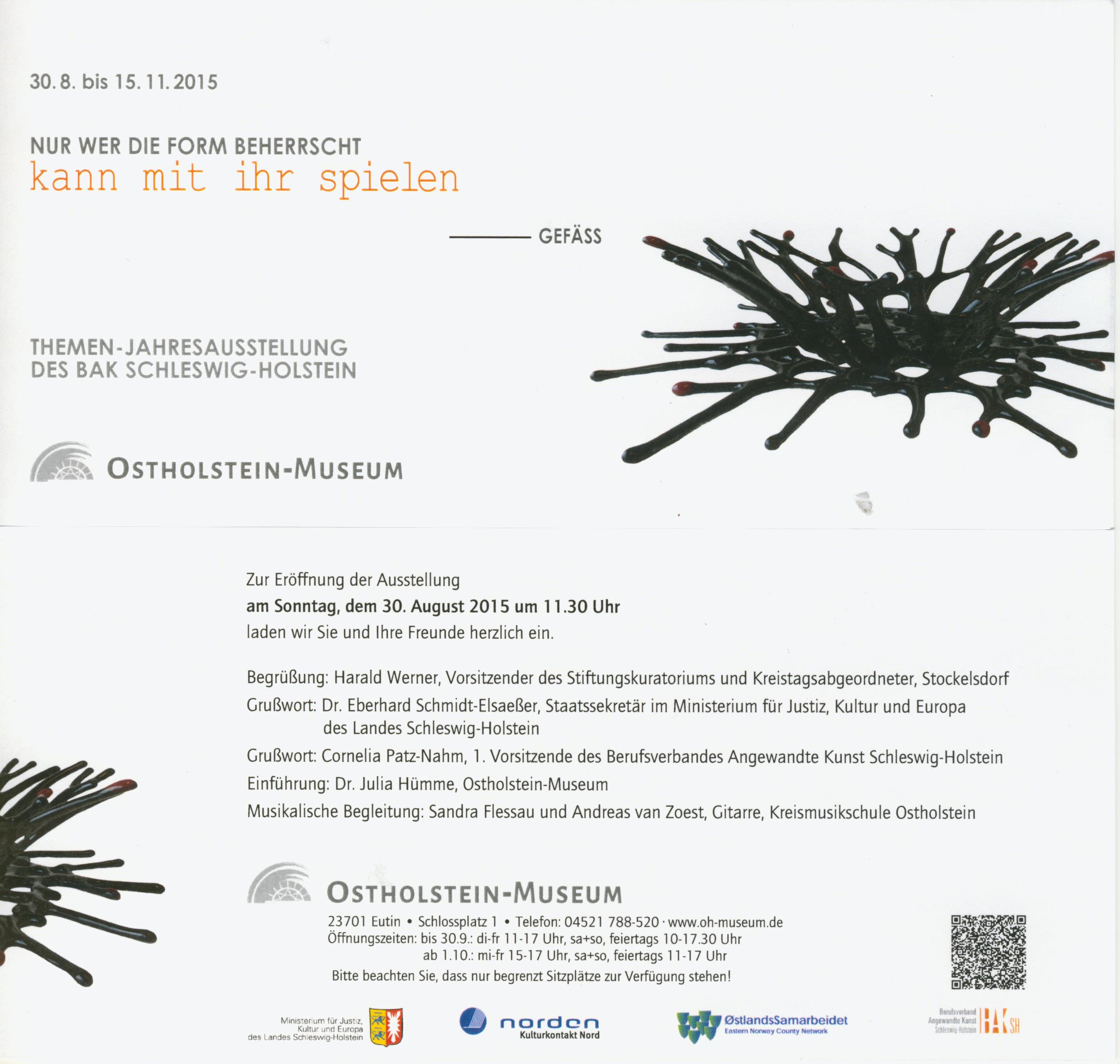 Die diesjährige Ausstellung bildet die Auftaktveranstaltung zu einer Ausstellungsreihe, die künftig alle drei Jahre in Zusammenarbeit mit dem Berufsverband Angewandte Kunst Schleswig-Holstein (BAK-SH) im Ostholstein-Museum stattfinden wird. Neben den Landesmuseen Schloss Gottorf in Schleswig und der Kunsthalle St. Annen in Lübeck wird künftig in einem dreijährigen Turnus auch das Museum in Eutin im Rahmen eines ganz eigenen Ausstellungskonzeptes unter dem Titel „Nur wer die Form beherrscht, kann mit ihr spielen“ die aktuelle angewandte Kunst im Lande zeigen. Es handelt sich dabei um jurierte Ausstellungen mit wechselnden Arbeitsthemen.