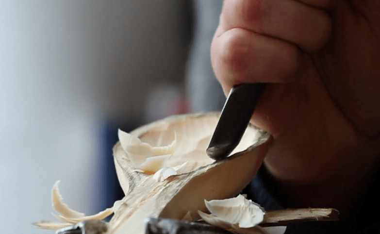 In England ist Nic Webb sicher der hippeste Löffelschnitzer weit und breit: jung, fröhlich und auf jedem Spaziergang gerät ein neues Holz oder Hölzchen in sein Visier. Er bevorzugt junges, frisches Holz, gerne auch mit viel Eigensinn – daraus macht er inzwischen nicht nur Löffelunikate. Aber die natürlich auch – und vor allem zeigt er vielen anderen wie man das macht, in seinen Workshops an der University of the Arts London und am Westdean College in Chichester zum Beispiel.