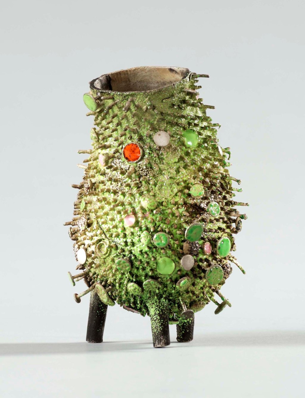 Den 1. Preis des Hessischen Staatspreises für das Deutsche Kunsthandwerk erhielt Julika Müller 2011 für Ihre Schmuckobjekte aus gegossenen Metallkörpern. (Pressetext)