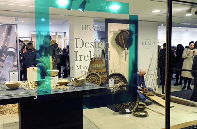 Design Ireland eröffnete das Heal’s Modern Craft Market Programm 2016 mit einer dreiwöchigen Präsentation und lebenden Werkstätten in den Schaufenstern des Londoner Geschäftes. „Meet the Maker“ hießen diese Aktionen, an denen die Designer Ceadogán (Wollteppiche), Catherine Keenan (Glas), Superfolk (bedruckte Stoffe und Möbel), Adam Frew (Keramik), Mullan Lighting und McNutt’s Donegal Woollen Mills (Textilien), Bunbury Board (Holzobjekte) u.a. beteiligt waren. Die Arbeiten irischer Designer hatten bereits beachtlichen Erfolg als sie im Laufe des vergangenen Jahres im Rahmen einer vom irischen Staat geförderten Initiative weltweit beworben wurden. Heal’s „Meet the Maker“ bot den Besuchern und Kunden die Möglichkeit die Kunsthandwerker persönlich kennen zu lernen und mehr über ihre Arbeitskonzepte und Techniken zu erfahren.