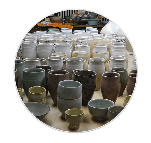 Im Laufe der letzten 30 Jahre hat sie eine große Anzahl von Keramik-Studenten aus aller Welt unterrichtet. Übungsstücke, die auch viel Eigenheiten der Keramiker in sich bergen, werden oft weggeworfen – nicht so in der Keramischen Werkstatt Margaretenhöhe: Gerade die “persönlichen Handschriften“ in diesen Arbeiten, das Bemühen, das in diesen Vasen erkennbar bleibt, war und ist für sie Grund genug, die Keramiken zu bewahren, mit einem einfachen Dekor zu versehen und – wenn Platz im Ofen ist – mitzubrennen.