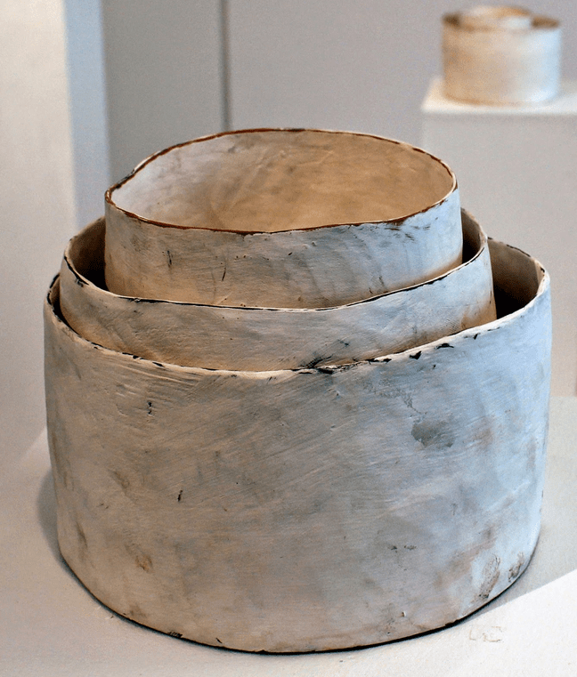 Das Fragile und Verletzliche stellt sie den robusten und starken Formen gegenüber. Die vertrauten Formen, Zylinder und gebaute Kästen, sind die Leinwand für ihre subtil belebten Oberflächen-Texturen. Der Ausdruck ist Maria Kristofersson letztlich wichtiger als die Funktionalität.