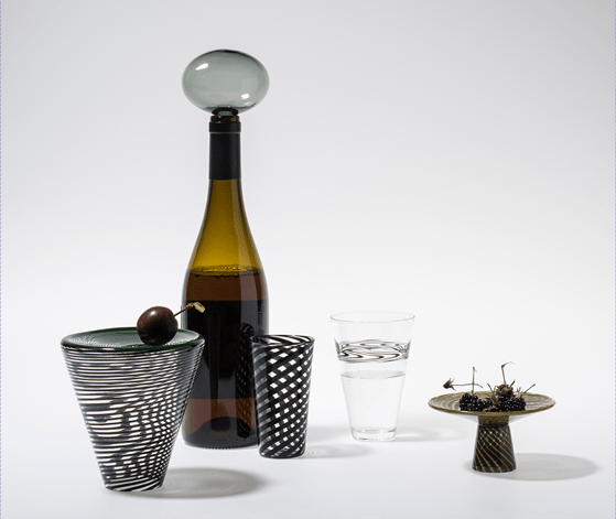 Das französische Duo Laurence Brabant, Deisgner und Alain Villechange, Glasbläser, kreiiert eine poetische Welt, in der Transparenz und visuelle Effekte mit den Prinzipien der Naturgesetze spielen. Ihre Gefässe werden dadurch im Gebrauch lebendig, Die Farbigkeit mancher Behälter „vermischt“ sich im Gebrauch optisch mit ihrem Inneren. Die Volumen geben ihren Inhalt nur gegen besondere Aufmerksamkeit frei. Die Kollektion nützlicher Objekte von Laurence und Alain ist mit dem Zauberhaften der Kindheit verbunden, mit dem Geist von Entdeckung und Spiel. Ihnen widmet die kleine feine Galerie Butik for Borddækning in Kopenhagen eine sehnswerte Soloausstellung.