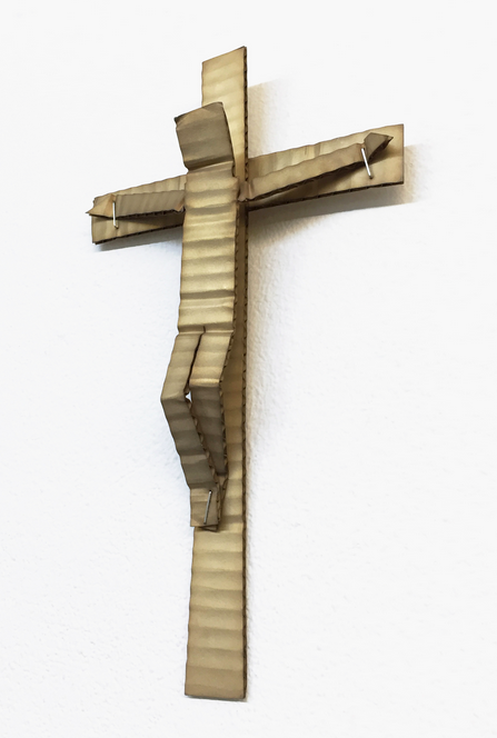 Schnuppe von Gwinner 22. Februar 2017 silber11 David Bielander. Kruzifix. Silber, Weißgold, Heftklammern, patiniert. 2015. Foto Dirk Eise