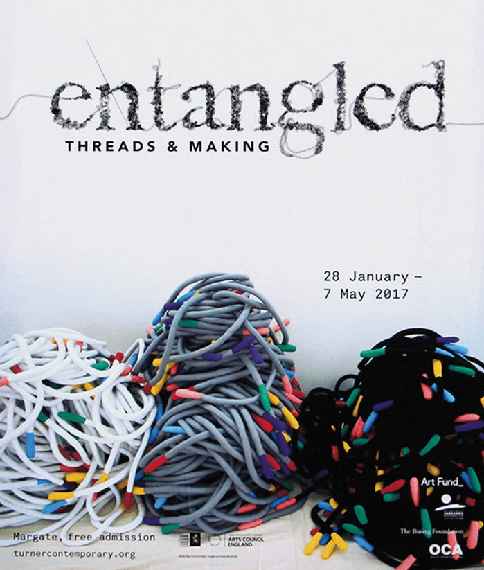 Kuratiert wurde die Schau Entangled: Threads & Making von der Autorin und Kritikerin Karen Wright für Turner Contemporary. Die Herstellungsprozesse faszinierten sie besonders bei ihren vielen Studiobesuchen, die sie für die Kolumne „In the studio“ des Independent absolvieren musste. die Idee zur Ausstellung entsatnd aus diesen Erfahrungen und ganz besonders in Folge der Begegnung mit der amerikanischen Künstlerin Kiki Smith, die an ihrer epischen Tapissery „Sky“ (2012) arbeitete, die auch in der Ausstellung zu sehen ist.