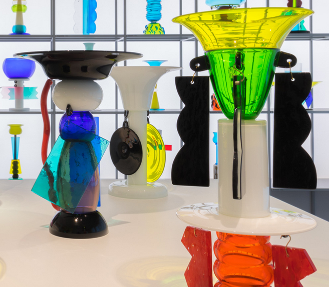 „‘Sottsass’s Glasobjekte sind komplexe Organismen, so entworfen als seien sie Charaktere. Der Künstler -Architekt überwindet die technischen Grenzen des Materials indem er Glas, Kunststoff und Polycarbonat verwendet und lebendig werden lässt,“ sagt Luca Massimo Barbero, “ sie sind Wesen aus vielen Elementen die eine lebendige, imaginäre Welt erschaffen. Die Ausstellung „Ettore Sottsass: The Glass” befördert Murano Glas mit einer Vitalität in die Gegenwart, die in die Zukunft weist“. (frei nach dem ital.. Pressetext)