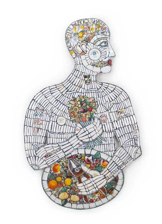 Ein besonderes Highlight wird in diesem Jahr eine Installation von Cleo Mussi sein, deren Mosaike aus Geschirr-Scherben in England ganz besonders populär sind. Sie wird im „Belfry Room“ einen Rückzugsort der besonderen Art schaffen, in dem man sich in der Umgebung ihrer fantasievollen Gestalten und Figuren erholen kann. In ihren Mosaiken recykelt sie englisches Geschirr der vergangenen Jahrzehnte, Jahrhunderte? Mal abgesehen davon, dass diese eigenwillige Dekorativität durchaus ihren Charme hat entdecken die Engländer mit Sicherheit irgendwo den Henkel der Tasse, mit der sie bei ihrer Großmutter Tee getrunken haben, oder eine Vase, die sie an vergangene Zeiten erinnert. So haben die Werke von Cleo Mussi immer mehrere Bedeutungsebenen.