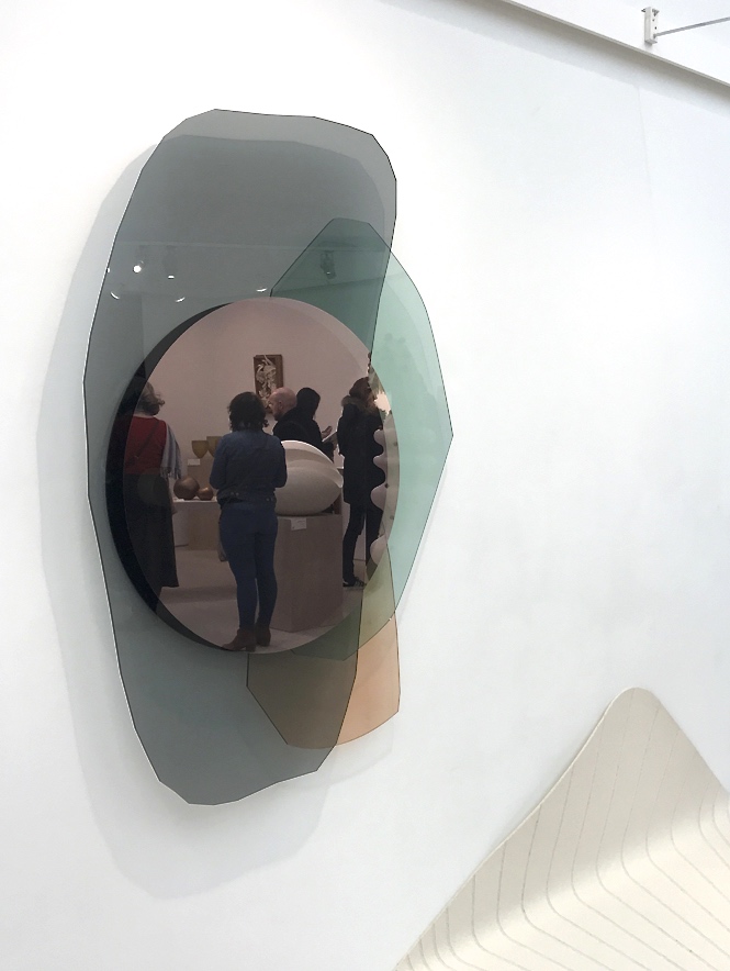 „Please don´t touch“ ist wohl der Satz, den ich in den letzten Tagen am häufigsten von mir gegeben habe und nun stehe ich am Stand der südkoreanischen Galerie LVS & LVS Craft vor den Tongefäßen des Künstlers Kwang-soo Seo und wünsche mir nichts sehnlicher, als einmal über den gewaltigen Bauch des wunderbaren „Celadon Moon Jar“ streichen zu dürfen. Der Mensch möchte nicht nur mit einem Sinn wahrnehmen. Was für eine reine, stille Schönheit, denke ich und blicke mich um. Anders als an den Nachbarständen werde ich hier nicht sofort angesprochen und in ein umfangreiches Werk eingeführt. Hier darf ich einfach geniessen und bin dankbar für die koreanische Zurückhaltung.