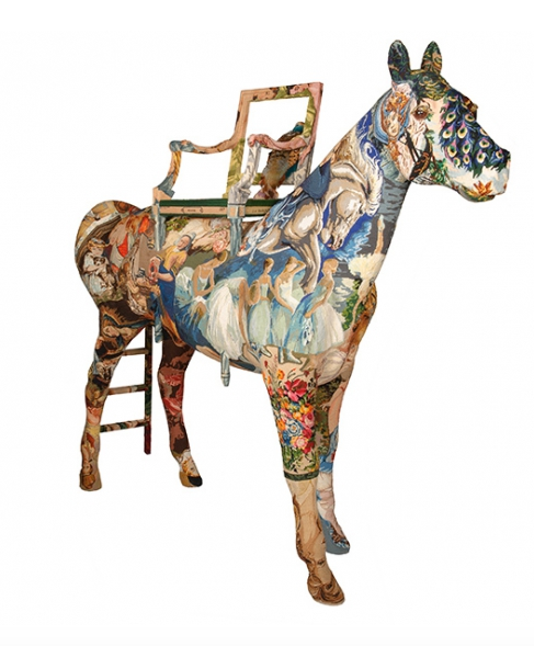 In Ritualen, die dazu bestimmt sind die Welt wieder auf den Pfad der Tugend zurück zu führen kehrt sie gestickten Kitsch und vintage Tapisserien hervor um damit fantastische Tierwelten und kleine Objekte, auch Jagdtrophäen und Kleinmöbel, zu verkleiden. So wird aus dem Ausstellungsraum ein schamanistisches Kuriositäten-Kabinett.