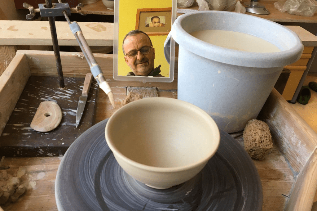 Abbildung: der Keramiker Jerry Johns bei der Arbeit!