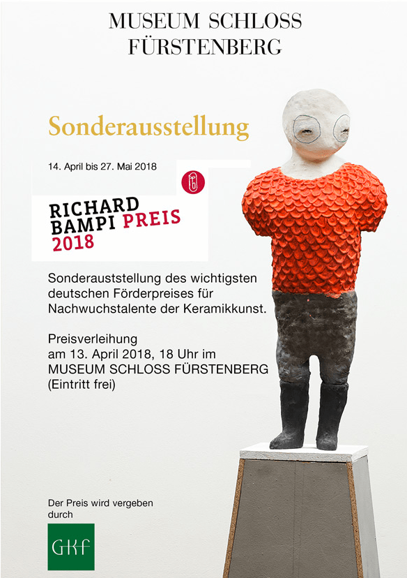 Die Gesellschaft der Keramikfreunde e.V. verleiht zum 15.Mal den Richard-Bampi-Preis zur Förderung von Nachwuchskünstlern im Bereich der Keramikkunst. Dieser Preis zählt mit seiner Dotierung von € 12.000, zu den wertvollsten Keramkpreisen in Deutschland!