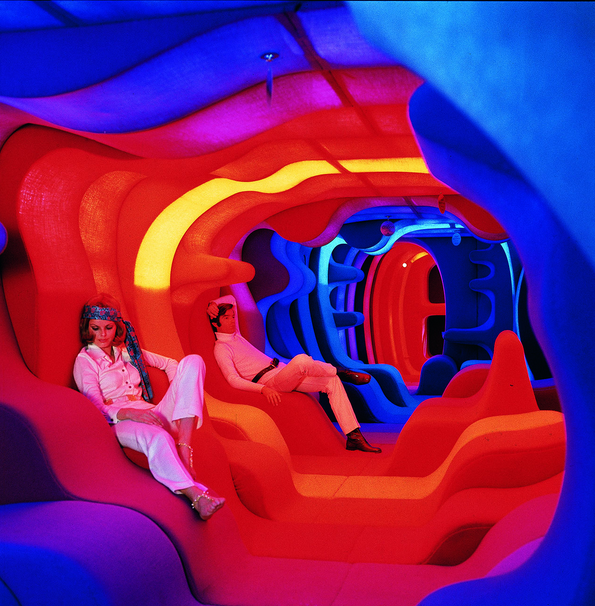 Despite its distinctive features, Scandinavian design was not immune to the influence of the swinging sixties. Danish designer Verner Panton was responsible for some of the most innovative interiors and psychedelic furnishings for hotels and restaurants, often in a variety of glossy materials and bold colours. Particularly notable are his spectacular ‘Visiona’ interiors for the Cologne Furniture Fair. During Simply Scandinavian, visitors can step inside the undulating landscape of ‘Visiona II’, a partial reconstruction of the installation from the Vitra Design Museum in Germany. Reflecting the decade’s Space Age aesthetic, Finnish designer Eero Aarnio imagined futuristic furniture like the fibreglass ‘Ball Chair’. Also from Finland, the home furnishings company Marimekko became known for its vibrant printed fabrics, such as Maija Isola’s famous poppy pattern.