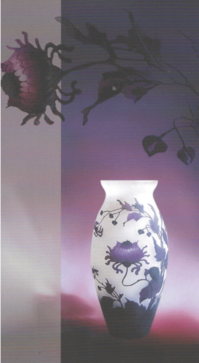 Dieser Vorgang wurde je nach dem gewünschten Motiv und Farbnuancen wiederholt. Die Lausitzer Gläser sind in der Mehrzahl mit der reliefartigen, aus dem Überfang herausgeätzten Signatur „ARSALL“ in der unteren Wandungszone versehen. Die Produktion wurde 1918 aufgenommen und 1929 aus Effektivitätsgründen eingestellt (Weltwirtschaftskrise).(Pressetext)