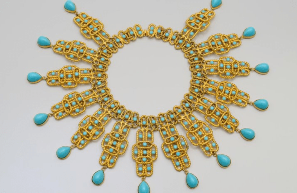 Die rund 500 Objekte der Ausstellung – zumeist zueinander passende Ensembles, sogenannte Paruren – werden erstmals in Berlin zu sehen sein. Es sind Leihgaben von Gisela Wiegert, einer der bedeutendsten deutschen Sammlerinnen von Modeschmuck. Seit mehr als 30 Jahren sammelt sie passioniert und kenntnisreich hochwertigen Modeschmuck und stellt die wichtigsten und schönsten Stücke ihrer opulenten Sammlung dem Kunstgewerbemuseum großzügig für die Ausstellung zur Verfügung. (Pressetext)