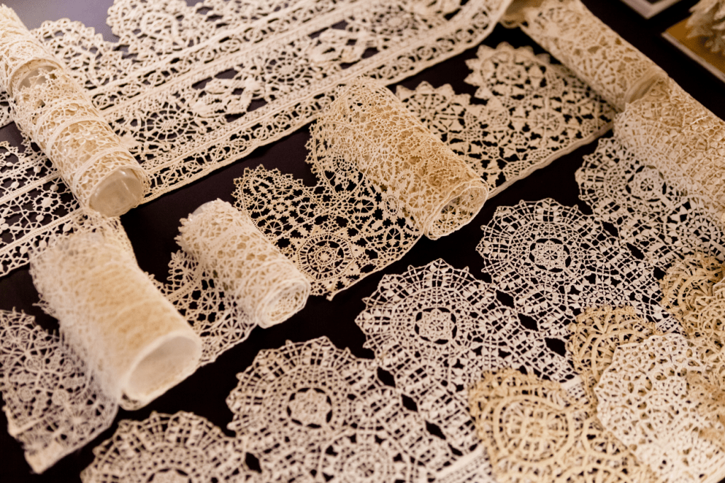 Die Ausstellung folgt der Entwicklung der Spitze im Kontext der streng regulierten höfischen Mode von den Anfängen im 15. Jahrhundert bis Ende des 18. Jahrhunderts, als Änderungen im Geschmack, die beginnende Industrialisierung und speziell die Französische Revolution dramatische Auswirkungen auf die Spitzenproduktion hatten. Kleiderordnungen kontrollierten die Mode bis ins 18. Jahrhundert und somit die Verwendung von Spitzen.