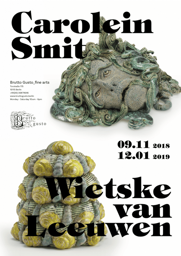 Einerseits drücken sie Eitelkeit und Gier auf eine Weise aus, sofort erkennbar und sowohl humorvoll als auch abstoßend. Noch während ihre Keramikskulpturen verräterischen Themen erkunden bleiben sie immer irgendwie liebenswert. Anmutige und elegante Formen kombiniert Sie mit störenden und sogar vulgären Motiven und schafft Sie so ein faszinierendes Spiel aus Anziehung und Abstoßung. Carolein Smits Arbeit zeichnet sich durch eine liebevoll detaillierte Behandlung des Materials und die humorvolle, aber verletzliche Erscheinung aus, die ihre Objekte durchdringt. “ (Pressetext)