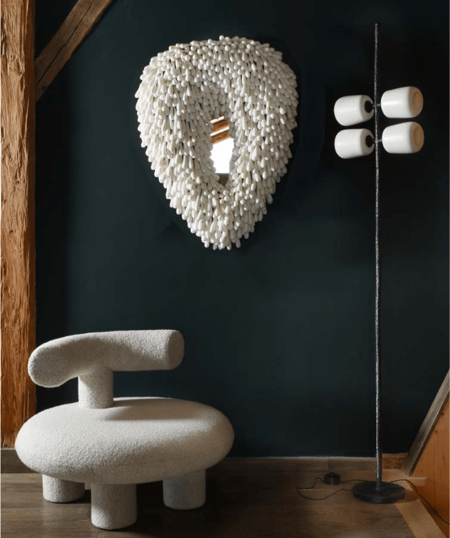 Jede ihrer Kreationen nutzt einen Moment magischer Eleganz, der zeitlos losgelöst ist, eine sinnliche Erfahrung. Eine neugierige, naive und ursprüngliche Kraft belebt ihre Stücke. Olga Engel konzentriert sich insbesondere auf Texturen. Durch Materialien schafft sie eine zweideutige, sensible und emotionale Stärke. Die Kraft des Schmiedeeisens in Kombination mit der Sanftheit des Porzellans bringt elegante Stücke hervor. Durch sehr feine Bisquit-Porzellanarbeiten versucht die Designerin, die Modernität eines fälschlicherweise vernachlässigten Materials seinen eigenen zerbrechlichen, taktilen und delikaten Ausdruckszauber wieder zu geben.