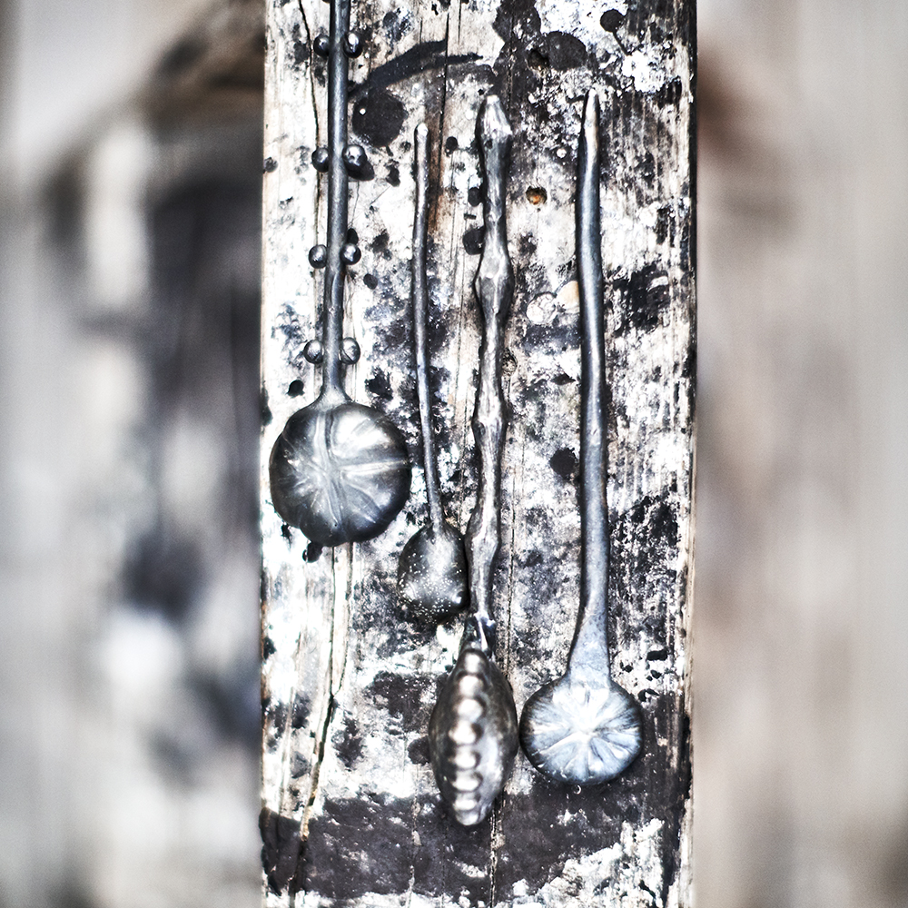 Es ist ein Spiel mit der Symbolik von Fülle und Leere, von Nehmen und Geben. Jedes Löffelobjekt ist Ausdruck von unerschöpflicher Fantasie und einer fröhlichen Gestaltungslust. Die Silberlöffel haben Kopf und Körper, sind Stiel und Bein, sind Blüte, Frucht und Blatt. Sie tanzen aus der Reihe, sprechen zueinander und treten in Kommunikation mit dem Betrachter/der Benützerin.