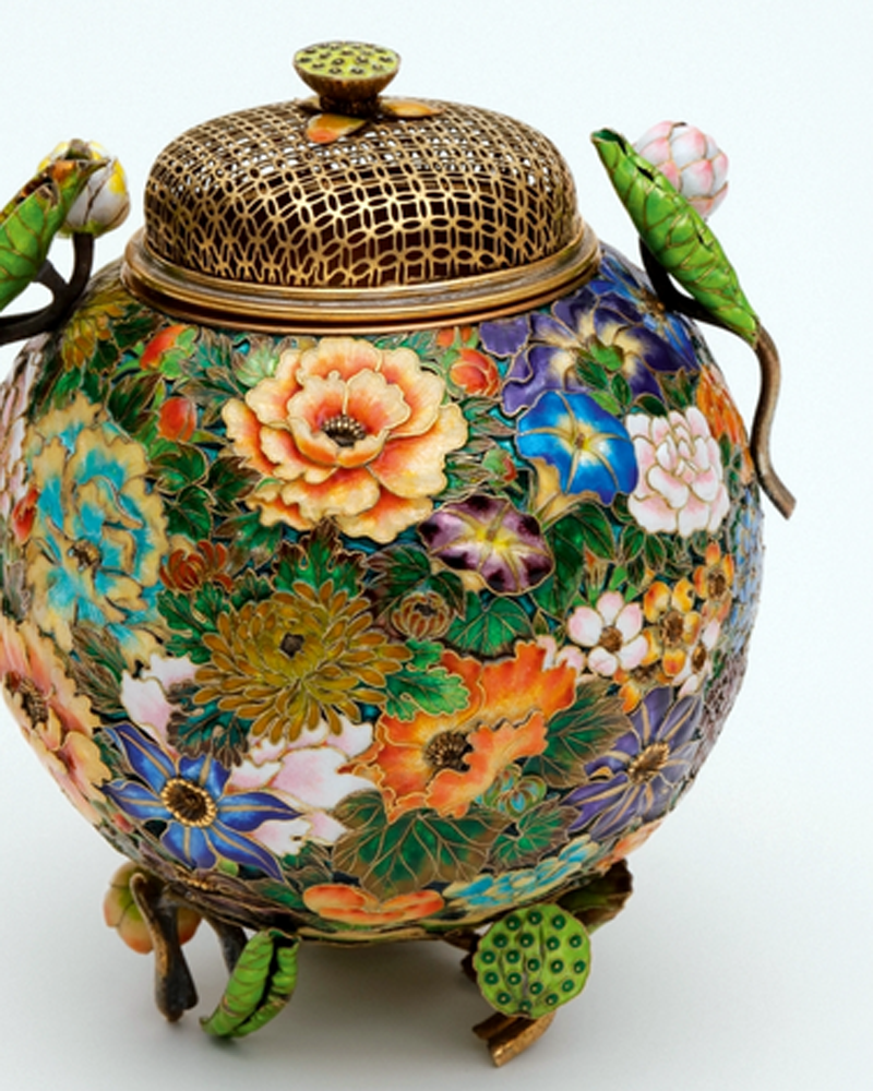 Als Japan sich Mitte des 19. Jahrhunderts der Welt öffnete, blickte der Westen staunend auf ein Land voller Naturschönheiten, aber auch auf eine Hochkultur und ihre raffinierten Artefakte.Der Japonismus als Modephänomen war geboren. Mit ihm erlebte die Kunstform des japanischen Cloisonnés einen rasanten Aufschwung. Kunstvoll verzierte Vasen, Teller und Schalen in jener Dekortechnik, bei der farbiges Glas zwischen feinen Kupferstegen auf eine Oberfläche aufgeschmolzen wird, wurden gezielt für einen gehobenen internationalen Markt geschaffen. In einer Verbindung aus östlicher und westlicher Ästhetik entstand ein neuartiger Stil des Dekorativen. Noch heute beeindrucken die zarten Farbverläufe, die fein gearbeiteten Motive und malerischen Oberflächeneffekte.