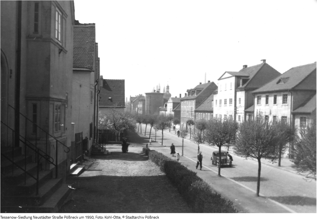 Für Pößneck sind über 80 Gebäudeentwürfe Heinrich Tessenows vom Beginn der 1920er Jahre überliefert. 75 dieser Gebäude wurden realisiert, 74 davon sind noch vorhanden, verteilt auf drei Siedlungen und verschiedene Einzelbauten. Eines dieser Objekte kann nun temporär als Schauwohnung besichtigt werden: In der Neustädter Straße 101 wird der Besucher in die Wohnkultur um 1920 zurückversetzt.