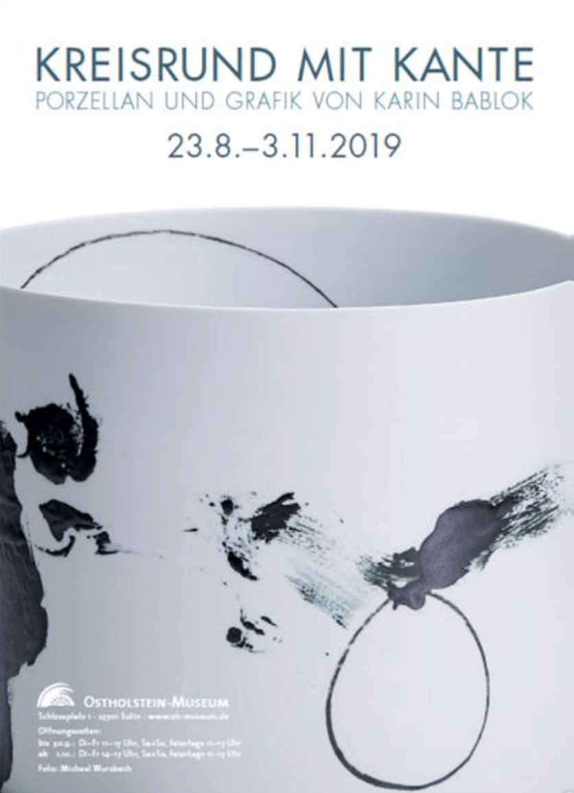 In der Zeit vom 23. August bis 3. November 2019 zeigt das Ostholstein-Museum mit einer großen Zahl an Porzellanarbeiten und Tuschezeichnungen der Hamburger Keramikerin Karin Bablok einen umfassenden Einblick in das langjährige Schaffen der international erfolgreichen Künstlerin, deren Schwerpunkt auf dem gedrehten Porzellangefäß liegt – als künstlerischem Ausdrucksmittel oder auch als nutzbarem Gegenstand.