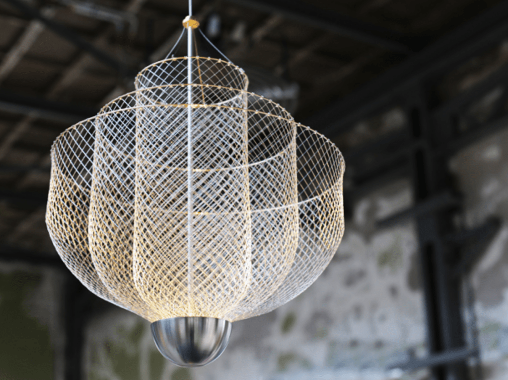 Jeroen van Kesteren fertigt neue, einfallsreiche und detailreiche skulpturale Luftschiffe aus Pappe und Papier, die an eine vergessene Welt erinnern und Teil einer Steampunk-ähnlichen Serie mit dem Titel Orphanage for Lost Adventures sind. Auch Rick Tegelaar zeigt, dass er ein minderwertiges Material auf ein hohes Niveau heben kann. Er wählt Hühnerdraht für seine Meshmatics-Kronleuchter.