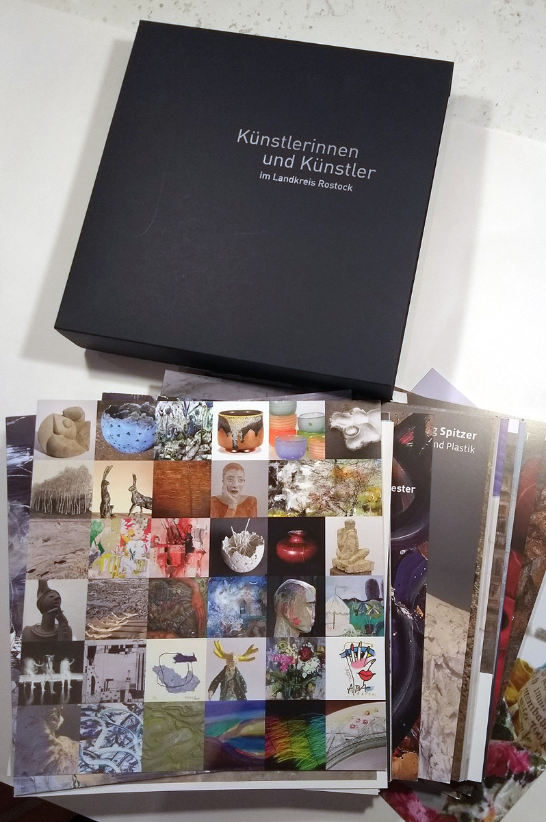 Der Kunstschuber des Landkreises Rostock ist da! Er beinhaltet 35 Kunstkarten – für 35 Künstler*innen – mit Bild und Text.