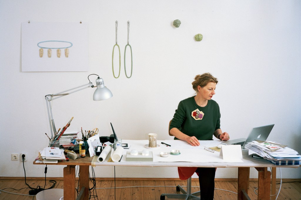 Als Künstlerin arbeitet man nicht nach Auftrag, aber in einem Gerüst von Ausstellungen und Projekten. Fällt dies weg muss man sich neu justieren und die Sinnfrage stellt sich ein. Schmuck, sich schmücken hat auch immer etwas mit Lebensfreude zu tun. Ich glaube nicht, dass Menschen momentan Schmuck kaufen möchten wenn sie eine Maske im Gesicht haben.“