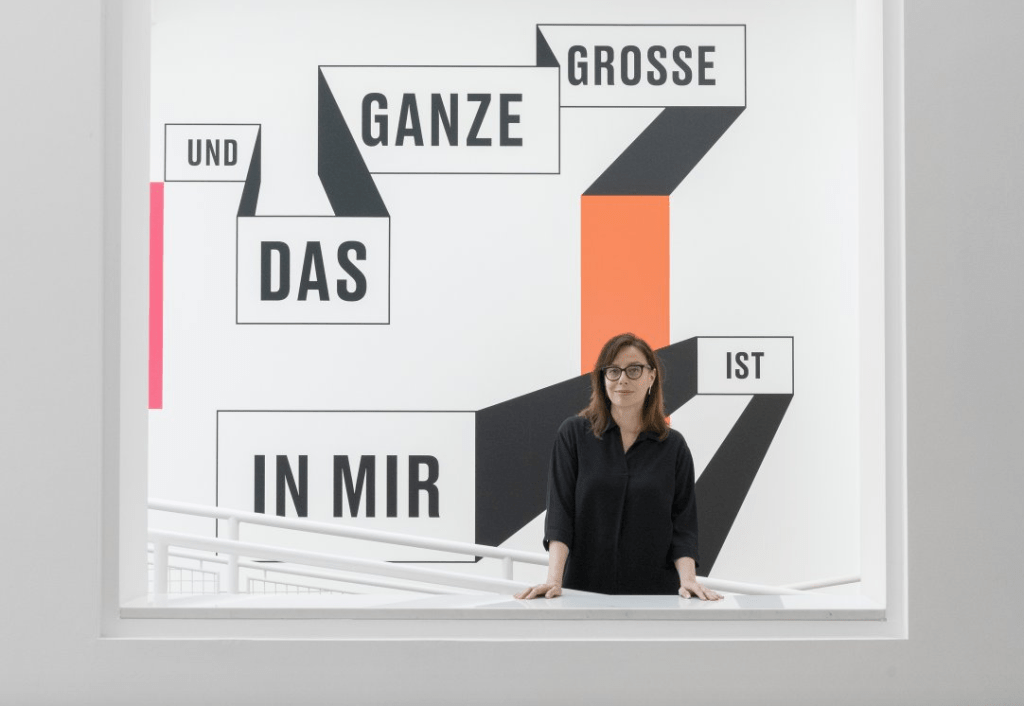 In dieser ersten Einzelausstellung in Deutschland kontextualisiert, ironisiert und kommentiert Anette Lenz ihr eigenes Lebensgefühl. Sie verwandelt die Museumsräume in begehbare grafische Welten, die visuelle Kommunikation als sinnlich-poetischen Denkanstoß erlebbar machen. Der Titel à propos – was so viel bedeutet wie „nebenbei bemerkt“ – steht dabei nicht nur für ein kommentierendes Hinzufügen von etwas Eigenem, sondern erhebt auch den Anspruch auf Relevanz: ein Kommentar, der genau zum richtigen Zeitpunkt kommt. Er lässt sich als Aufforderung an uns verstehen, eine Komplizenschaft mit dem Werk und der gestalterischen Haltung von Anette Lenz einzugehen. Die Wirkung ihrer Arbeiten macht uns dabei nicht zu Konsument*innen, sondern ermöglicht uns, am Ideenreichtum und der Ausdruckskraft von Grafikdesign teilzuhaben, an einem raffinierten Spiel aus immer wieder anders inszenierten Wechselbeziehungen von Information und Bildlichkeit. Das grafische Werk ICH BIN EIN TEIL DES GROSSEN GANZEN UND DAS GANZE GROSSE IST IN MIR von Anette Lenz ist dabei ein passender Auftakt für ihr Konzept eines gestalterischen Nachhalls, das in diesen Zeiten wohl kaum aktueller sein könnte.