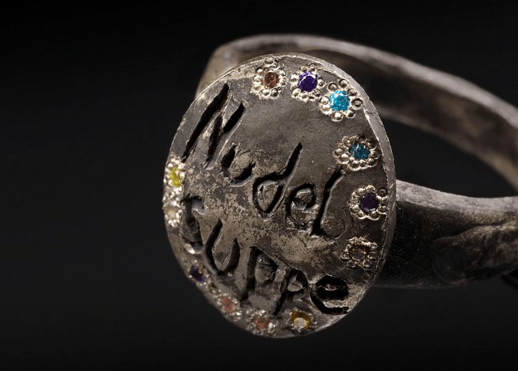 Die unerreichte Materialbeherrschung und Aussagekraft des Schmuckkünstlers zeigt sich in jedem einzelnen Ring. Jedes Stück hat eine gewaltige Stärke, resultierend aus der gleichzeitig filigranen wie archaischen Behandlung der Edelmetalle: Karl Fritsch schnitzt in Silber, hobelt in Gold, setzt seine Rubine und Zirkonia, wie ein Kind einen Kuchen verzieren würde – selbstbewusst und ohne Rücksicht auf Verluste.