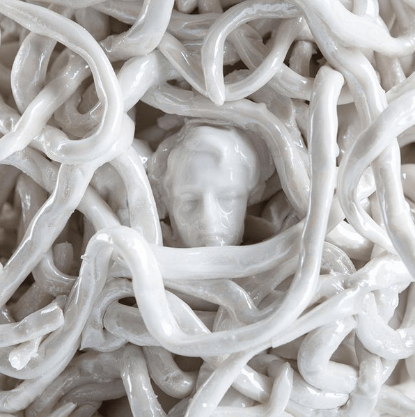 Sarah Pschorn lebt und arbeitet als bildende Künstlerin und experimentelle Objektmacherin in Leipzig. Ihre dreidimensionalen Collagen, die hauptsächlich aus Ton, Porzellan und Fundstücken bestehen, sind eine spielerische Entdeckung des Raumes zwischen Freude und Melancholie, sie zielen darauf ab, sich in Details und Eigenschaften zu verlieren und verhandeln so die Natur der Vergänglichkeit. Ein Statement zu Gunsten von Süße und Sentimentalität. Die von ihr gewählte Form, die Vase, verweist auf die Geschichte der Keramik, die Objekte dienen als Gefäße für ihre Ideen und Gedanken und erinnern vor allem auch an verkleidete Frauenkörper.