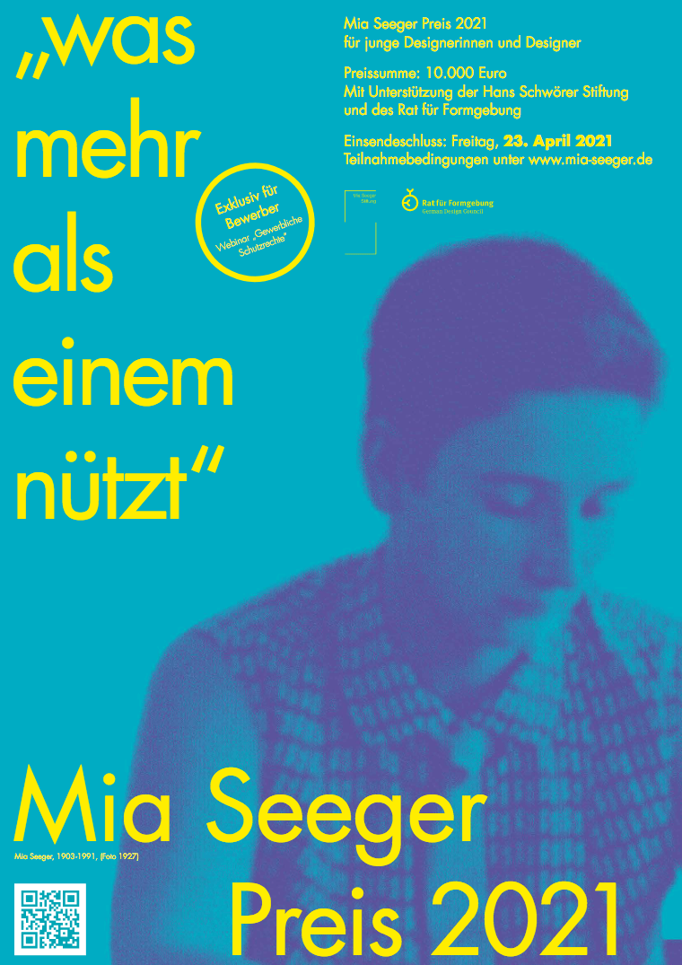 Zur Förderung des Designnachwuchses schreibt die Stiftung mit Unterstützung der Hans Schwörer Stiftung und dem Rat für Formgebung den Mia Seeger Preis 2021 aus und dotiert ihn mit 10.000 Euro.