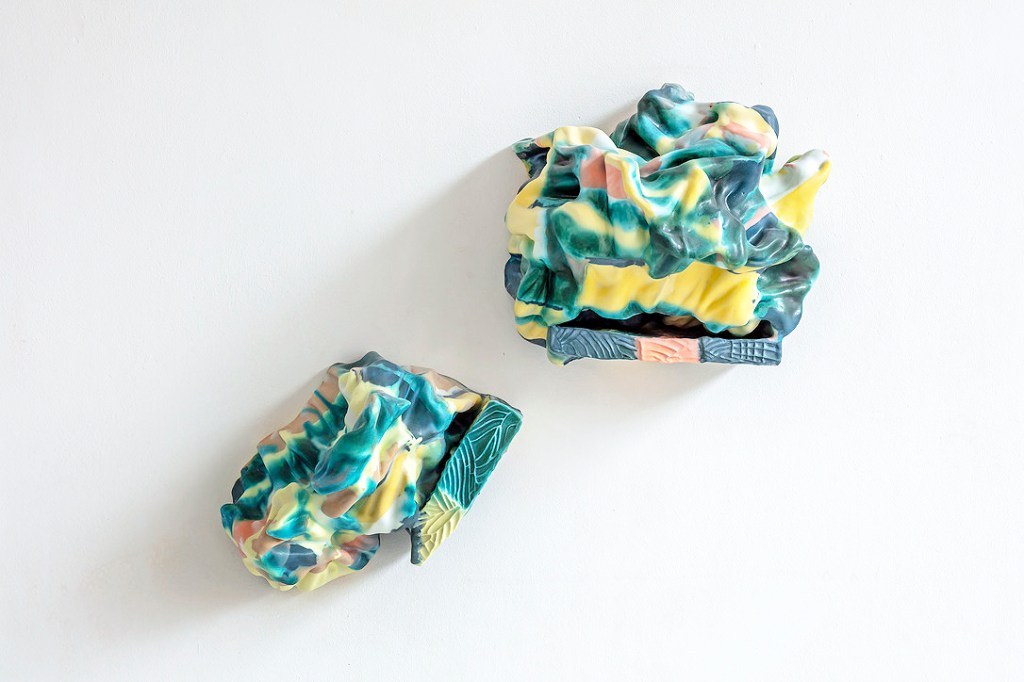 Babs Haenens Liebe zu Tanz und Bewegung zeigt sich in den Schichten und Falten des mit Pigmenten gefärbten Porzellans, die ihre ausdrucksstarken, taktilen Werke bilden. In ähnlicher Weise zeigen Beppe Kesslers abstrakte Arbeiten einen Sinn für Bewegung, da sie ihr Material immer wieder bis an seine Grenzen dehnt, ständig bricht und erneuert, um etwas Weiteres zu schaffen. Für Kessler ist der Träger der Farbe, die Leinwand, genauso wichtig wie die Farbe selbst. Beide Künstler erforschen in ihren Arbeiten eine breite Farbpalette, die manchmal üppig, manchmal aber auch zurückhaltend und unaufdringlich ist. Für Haenen zeigt die malerische Art und Weise, in der sie ihre Gefäße verziert, die Art und Weise, in der die Malerei und insbesondere die alten Meister ihre Praxis weiterhin beeinflussen. Inspiriert sowohl von der Kraft der Elemente, wie Wind und Wasser, als auch von den kleinen Dingen des Lebens, changieren Kesslers Arbeiten zwischen tiefen Grün-, Blau- und Türkistönen bis hin zu sanften Gelb- und Weißtönen.