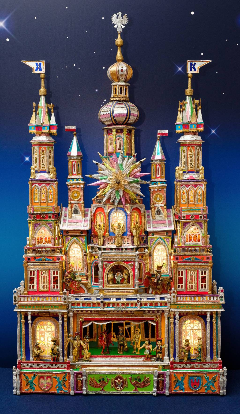 An den bescheidenen Stall, in dem das Jesuskind neben Ochs und Esel in der Futterkrippe lag, erinnert bei den Krakauer Krippen so gut wie nichts. Sie sind farbenprächtige und goldverzierte Traumarchitekturen, die es mit jedem Märchenschloss aufnehmen können.