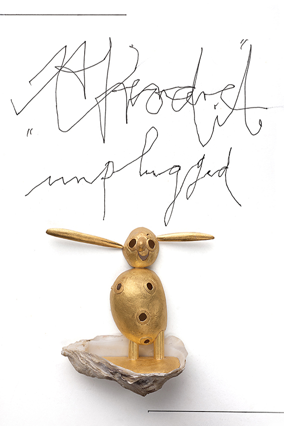 Vom weissen Schutzumschlag grüßt uns die heitere „Aphrodite unplugged“ – die griechische Göttin der Liebe, der Schönheit, der sinnlichen Begierde, der Sexualität und der Fortpflanzung in archaisch naiver Darstellung, unverfälscht wie eine Kinderzeichnung, aus purem, matten Gold. Eine geniale Einstimmung auf den Kosmos des Künstlers Manfred Bischoff! Rosé und Kakao – diese Farbkombination war bisher für mich mit der Imagination der Pullover, die Frau Waas für Jim Knopf strickte, belegt ( s. Michael Ende). Nun leitet sie überraschend stimmig durch dieses umfangreiche und ausführliche Buch über Leben und Werk dieses unvergessenen und verehrten Schmuckkünstlers. Zahlreiche Abbildungen und Zeichnungen, ergänzt durch private Fotos und Notizen, gewähren Einblicke in seinen außergewöhnlichen künstlerischen Kosmos. Die freundschaftlich konnotierten Textbeiträge umkreisen die Gedankenwelt und Persönlichkeit Manfred Bischoffs aus unterschiedlichen Perspektiven.