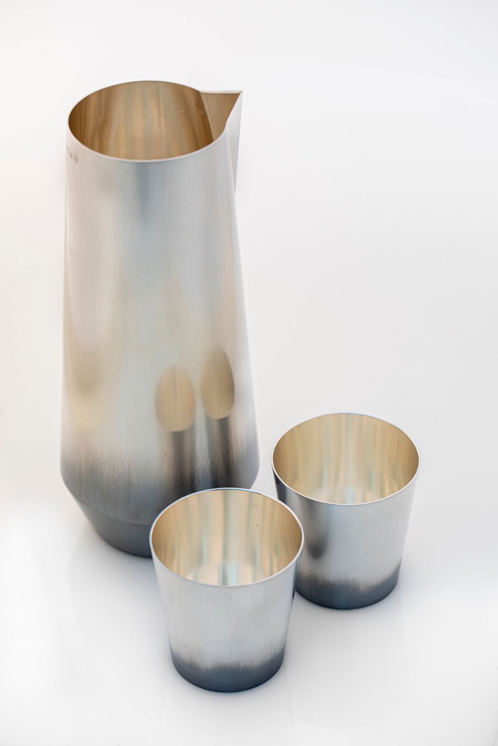 Der Gold- und Silberschmied aus Bendorf überzeugte mit einer Karaffe und passenden Bechern, die mit einer fast schon vergessenen Technik aus dem 14.Jhd. meisterlich hergestellt wurde. Die besondere Textur und der schleichende Farbübergang an der Oberfläche, sowie die klare Formgebung sind sowohl optisch als auch haptisch ein außergewöhnlicher Genuss. An Präzision, Detailtreue und Harmonie ist die Kaffeepresse kaum zu überbieten und die Pommesgabeln zeigen auf eine selbstironische Weise Witz und Esprit.