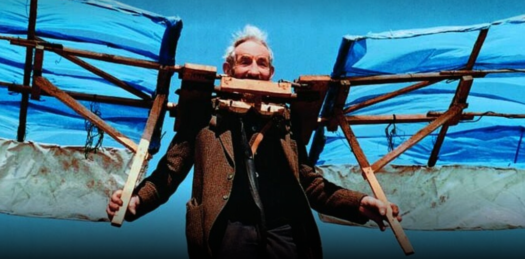 Gustav Mesmer wird 1903 in Oberschwaben geboren und wächst in einer Großfamilie auf. Er verlässt früh die Schule und arbeitet auf Gutshöfen, bis er im Benediktiner-Kloster aufgenommen wird und dort sechs Jahre bleibt. Nach einer jahrzehntelangen Odyssee durch zahlreiche psychiatrische Anstalten kommt er 1964 in ein Heim nach Buttenhausen. Seit 1932 widmet sich Gustav Mesmer seiner Passion, dem Menschenflug und entwirft Fluggeräte, die mit Muskelkraft betrieben, einen „kleinen Flugverkehr” von Dorf zu Dorf ermöglichen sollen. 1994, kurz vor seinem 92. Geburtstag, stirbt Gustav Mesmer.