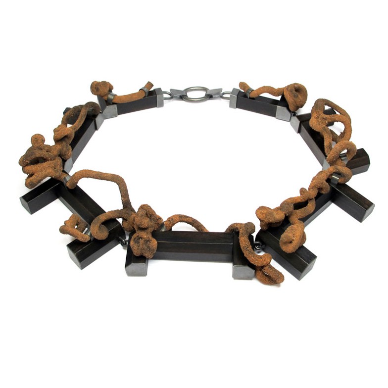 Terhi Tolvanen "rusty ornament" Halsschmuck 2022, Silber, Kirsch & Ranken-Holz