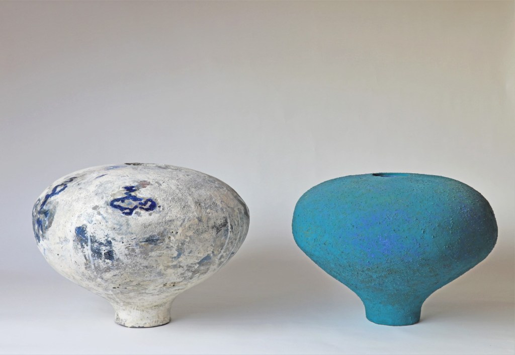 Aus der Ingenieurin Elisa Stützle-Siegsmund wurde in den frühen 1990er Jahren in den USA die Keramikerin. Die Faszination für das Handwerk und den natürlichen Werkstoff sieht man ihren unglatten, lebendigen Dingen an. In ihrer Arbeit mit (schamottierter) Tonerde wird ihre Liebe zur wirkenden Natur zur eindringlich bildhaften Erzählung. Mit einer aufgerauten, blau schimmernden Rundform gewann sie 2018 den baden-württembergischen Staatspreis Gestaltung Kunst Handwerk. Von planetarischer Anmutung – „exterrestrischem“ Eindruck – war die Rede. (Pressetext)