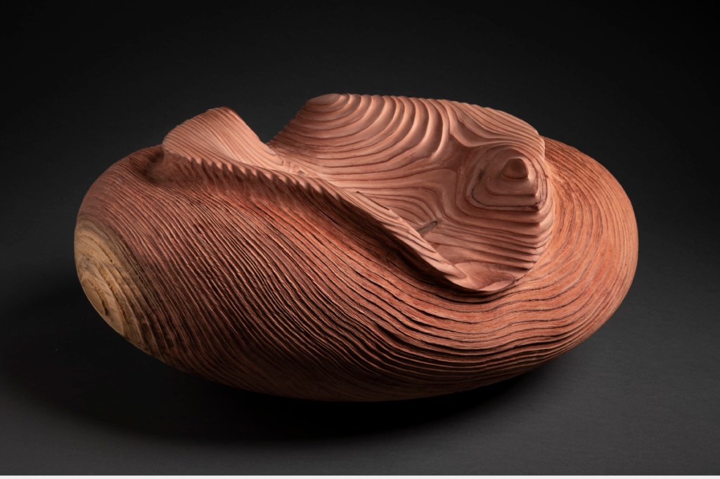 Wer seine Kunst für sich entdeckt, bemerkt, dass Holz nicht nur lebt, sondern Falten schlagen, die individuelle Formensprache von Wellen am Sandstrand aufnehmen, monolithisch wirken und eine auratische Wirkung haben kann.