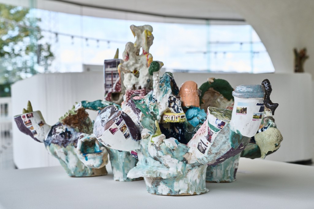 Ayaka Terajima ist Japanerin und ihre „Doki“-Serie ist beeinflusst von der reichhaltig geformten Keramik der Jōmon-Zeit (15 000 – 3 000 v. Chr.) in Japan. Bei ihr verwandelt sich die Formensprache unseres global standardisierten Verpackungsmülls in zeitlose archaische Keramikplastiken, jede für sich ein Unikat, nicht reproduzierbar, existierend im Hier und Jetzt, erschaffen aus Mutter Erde. ( Text: Für die Jury Angelika Metzger)