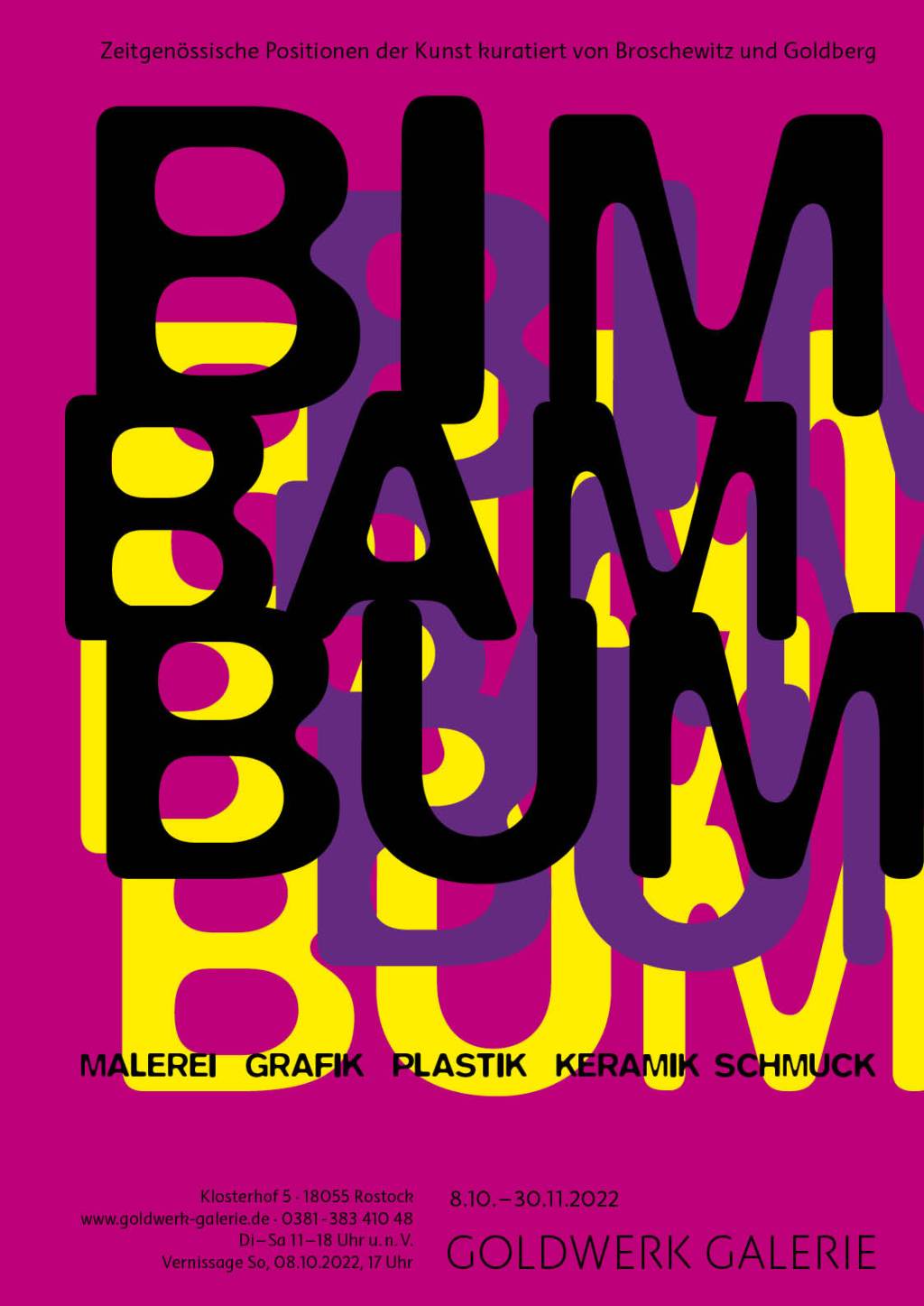 Allem Gebimmel, Gebammel und Gebummel der Welt entgegen hängen wir diese Ankündigung an die große Glocke: Die GOLDWERK GALERIE in Rostock zeigt im Herbst die Ausstellung „BIM BAM BUM. Zeitgenössische Positionen der Kunst“ kuratiert von Broschewitz und Goldberg mit Malerei, Grafik, Plastik, Keramik und Schmuck von dreizehn Künstler:innen.
