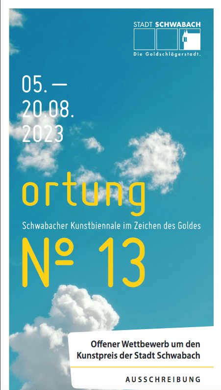 Die Kunstbiennale „ortung“ knüpft zum 13. Mal an Schwabachs Tradition als Goldschlägerstadt an und stellt die Kunsttage unter das Motto „Im Zeichen des Goldes“. Aus diesem Anlass schreibt die Stadt Schwabach den mit 8.000 Euro dotierten Schwabacher Kunstpreis aus.