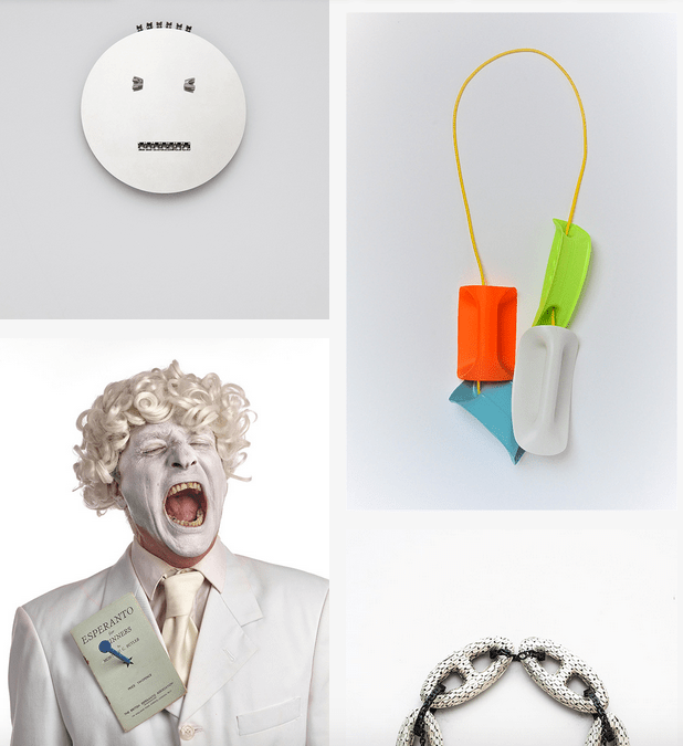 „Es wird viel darüber nachgedacht, welche Materialien wir verwenden sollten, und welche nicht,“ sagt die Kuratorin Caroline Broadhead. Doch das ganz ohne erhobenen Zeigefinger. So ist die „Nachhaltige Konstruktion Nr. 3“ des Norwegers Sigurd Bronger zwar aus einer gebrauchten Papprolle gearbeitet, das Thema ist aber ein ganz anderes: Es geht um die Bedeutung einer leeren Kiste. Welchen Wert messen wir ihr bei, wenn sie keine Funktion erfüllt? Und was passiert, wenn man die leere Kiste als Schmuck trägt? Hat sie dann nicht doch eine Funktion?