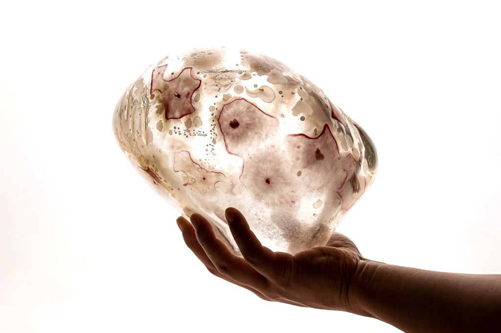 Die Arbeit von Studio ThinkingHand bewegt sich an der Schnittstelle von Wissenschaft, Kunst, Philosophie und Technologie. In ihrer Arbeit erforschen sie Möglichkeiten der Zusammenarbeit mit anderen Lebewesen wie Pilzen, Bakterien, Ökosystemen und synthetischem Leben. In den letzten Jahren hat Glas als Material, durch das die Natur betrachtet und erforscht werden kann, eine größere Rolle in ihrer Praxis gespielt – als Behälter für lebende Pilzkulturen und Träger futuristischer Lebensformen, als alternativer Lebensraum für Meerestiere und als Prisma für schwindelerregende Blicke in die Vergangenheit auf die Evolution des Planeten.