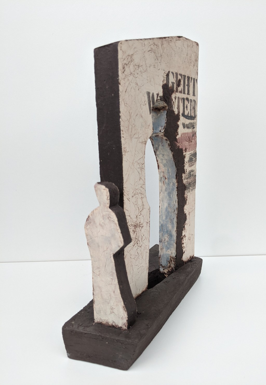 Die Künstlerinnen Petra Klischat (Filzobjekte, Malerei / Scherenschnitt) und Katharina Ortleb (Keramische Skulpturen) kennen sich durch vielfältige Begegnungen und Ausstellungen: