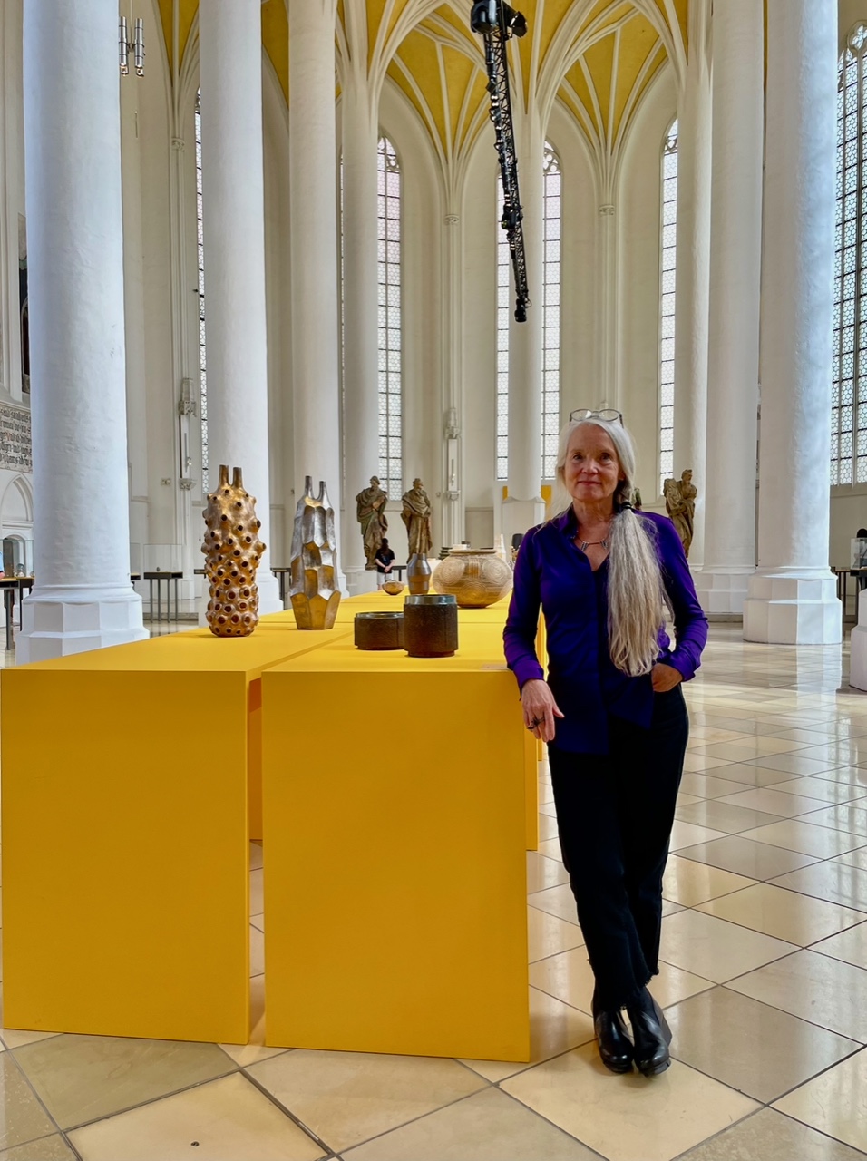 Im Herbst diesen Jahres wurde die 14. Ausstellung zum Danner-Preis in der säkularisierten spätgotischen Hallenkirche Heiliggeist in Landshut eröffnet, einem extraordinären Ort, dessen historische Architektur, Handwerkskunst und Spiritualität einen überwältigenden Rahmen für die Präsentation zeitgenössischen Kunsthandwerks bieten. Über zwei Jahre lief die Planung der Schau in diesem „respekteinflössenden, sakralen Raum, dessen Himmel gelb ist. In einem vierhundert Jahre alten Gelb! Ob ich mich das trauen darf?“ fragte sich Isolde Bazlen wissend, dass die Farbe Gelb im Umfeld von Objekten Schwierigkeiten bereiten kann. Doch die Verlockung war zu gross.