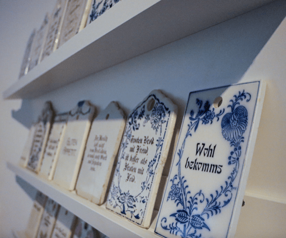 Schon seit dem Mittelalter spielt das Brot eine zentrale Rolle im Leben der Menschen in Europa. Die Ausstellung im Museum Schloss Fürstenberg versammelt Objekte und Geräte rund um die Themen Brotschneiden, Brotessen und Brotbewahren aus 200 Jahren. Der alltägliche Brotgenuss rückt ins Rampenlicht und ermöglicht den Besucher*innen neue Blickwinkel und Perspektiven auf die Funktionalität und Ästhetik der Utensilien. Gleich zu Beginn der Sonderausstellung findet man auf einem kreativ gedeckten Tisch ein großes, verziertes Schaubrot mit dem Schriftzug „BrotZeit“ der lokalen Bäckerei Engel. Darüber hinaus gibt es verschiedene Schneidemaschinen, Brettchen, Dosen und Kästen zu entdecken. So kamen zum Beispiel in der 2. Hälfte des 19. Jahrhundert Brotteller und Brettchen aus Porzellan mit Sinnsprüchen auf. Im Porzellanmuseum