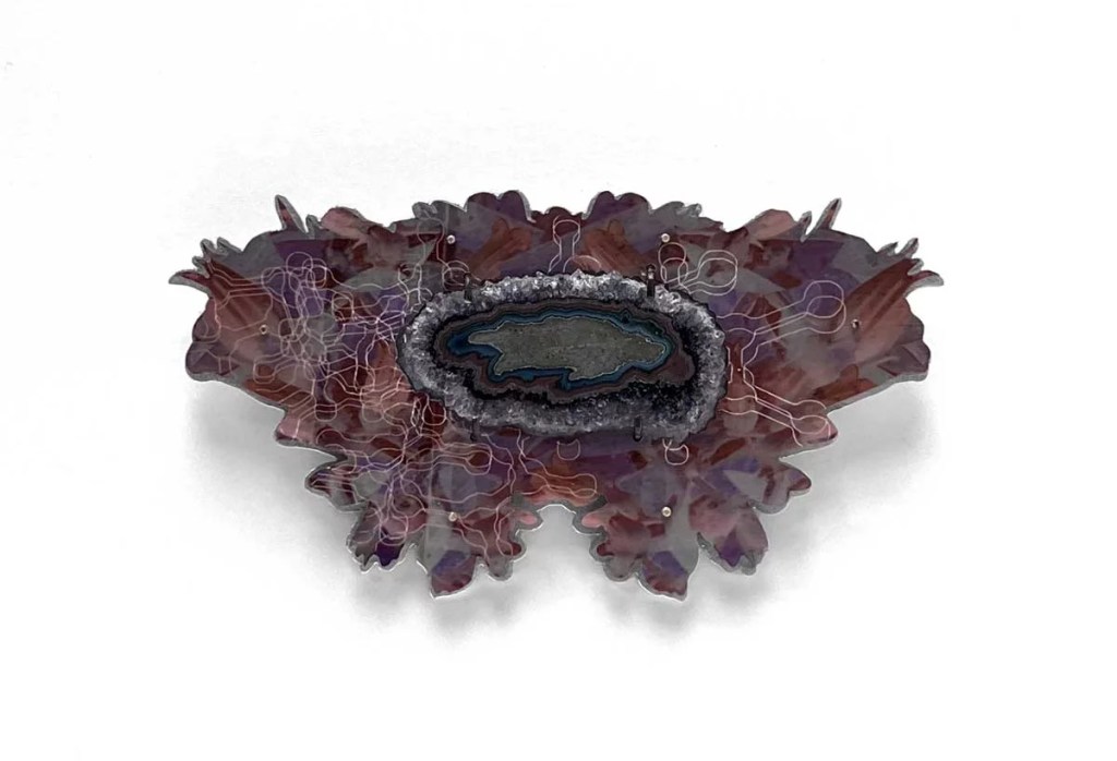 Sondra Sherman beschäftigt sich in ihrer „Edelsteinapotheke“ mit der Psychologie des Aberglaubens an Heilsteine und Amulettschmuck. Abstrahierte Psychopharmakologie, botanische Heilmittel, Tintenkleckse und Glücksbringer bilden den Rahmen für diese „heilenden“ Steine. Ausgehend von der Wirksamkeit des Glaubens bzw. des Placebos und den psychosozialen Funktionen von Schmuck, untersucht „The Gemstone Apothecary“ die reflexive Akzeptanz von Überzeugungen, die in unsicheren Zeiten als Balsam für die menschliche Psyche dienen können.